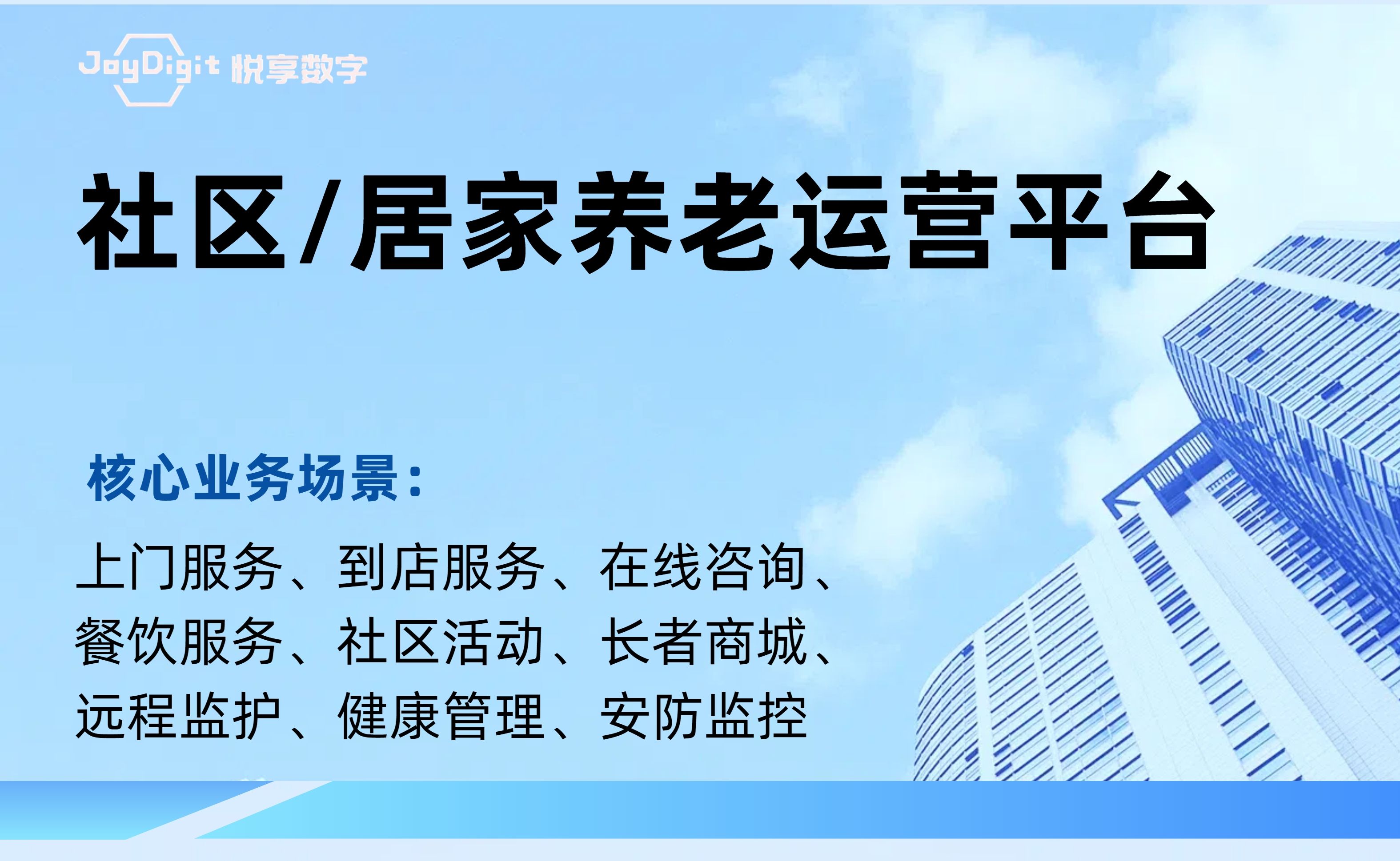 北京悅享數(shù)字科技有限公司(JoyDigit?,簡稱悅享數(shù)字?)作為養(yǎng)老行業(yè)數(shù)字化轉(zhuǎn)型的引領(lǐng)者,以“數(shù)字驅(qū)動(dòng)健康?,智慧賦能養(yǎng)老?”為愿景,以iSpeed作為養(yǎng)老行業(yè)數(shù)字化轉(zhuǎn)型的標(biāo)準(zhǔn),通過融合大數(shù)據(jù)、人工智能、物聯(lián)網(wǎng)、區(qū)塊鏈和移動(dòng)互聯(lián)等創(chuàng)新技術(shù),打造了領(lǐng)先的數(shù)字化養(yǎng)老解決方案-悅享養(yǎng)老數(shù)字化平臺(tái)(JoyDigit NexSight Platform),端到端覆蓋了數(shù)字化渠道與銷售、業(yè)務(wù)流程標(biāo)準(zhǔn)化與智...